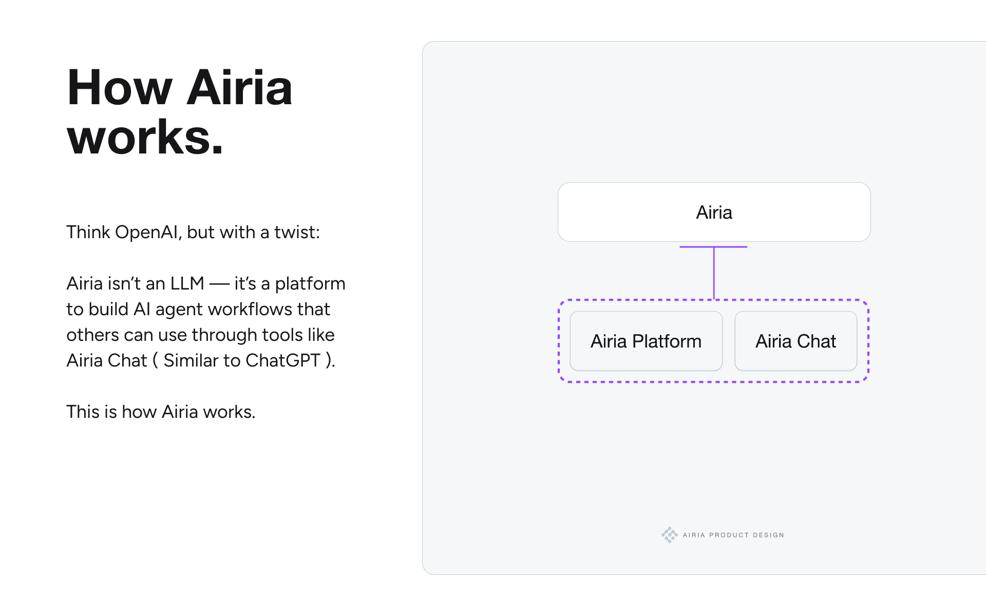 Airia’s strategy is built around a core platform for creating AI agents, and tools where users interact with them across web, iOS, and Android.
